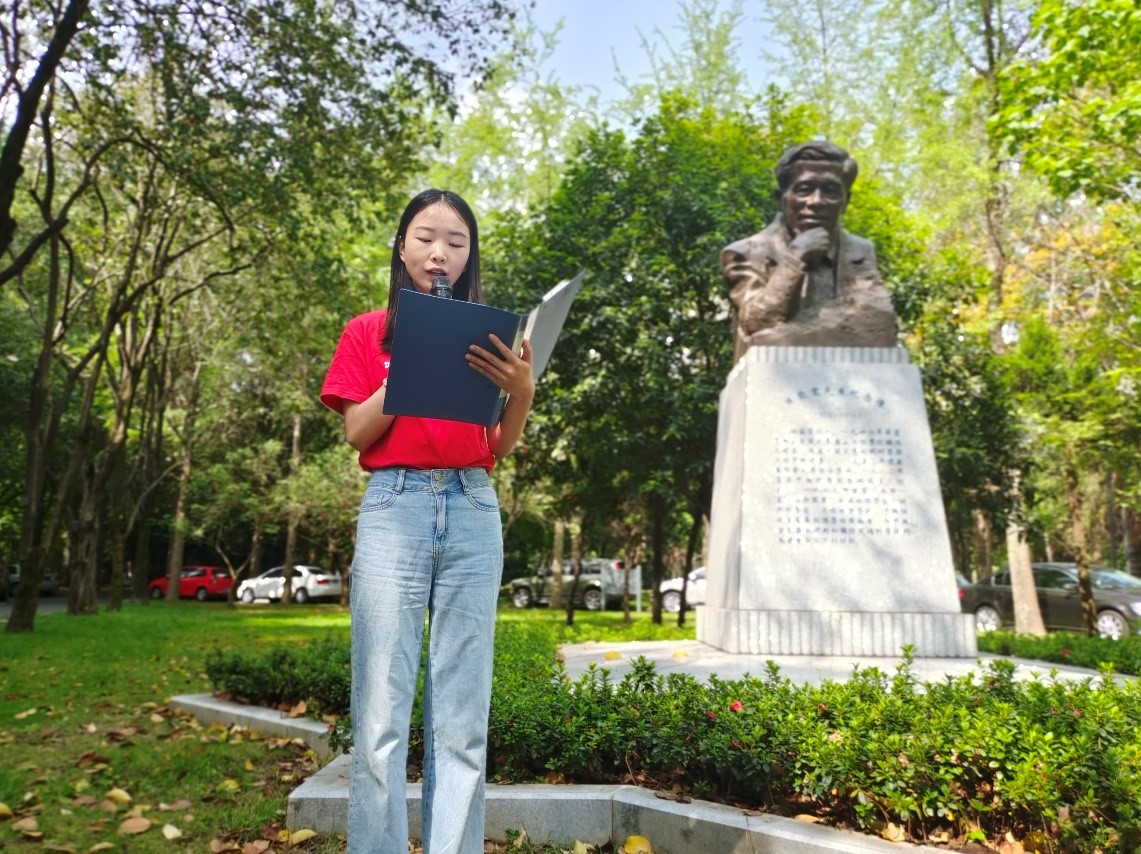 启动仪式结束后,举行了基于“科学家精神传承”的劳动实践教育活动第一堂“微党课”。三位学子在陈能宽雕塑前分享陈能宽院士的小故事以及他们的学习感受,他们生动而有情感的讲解,深深的感染着在场的每个人。