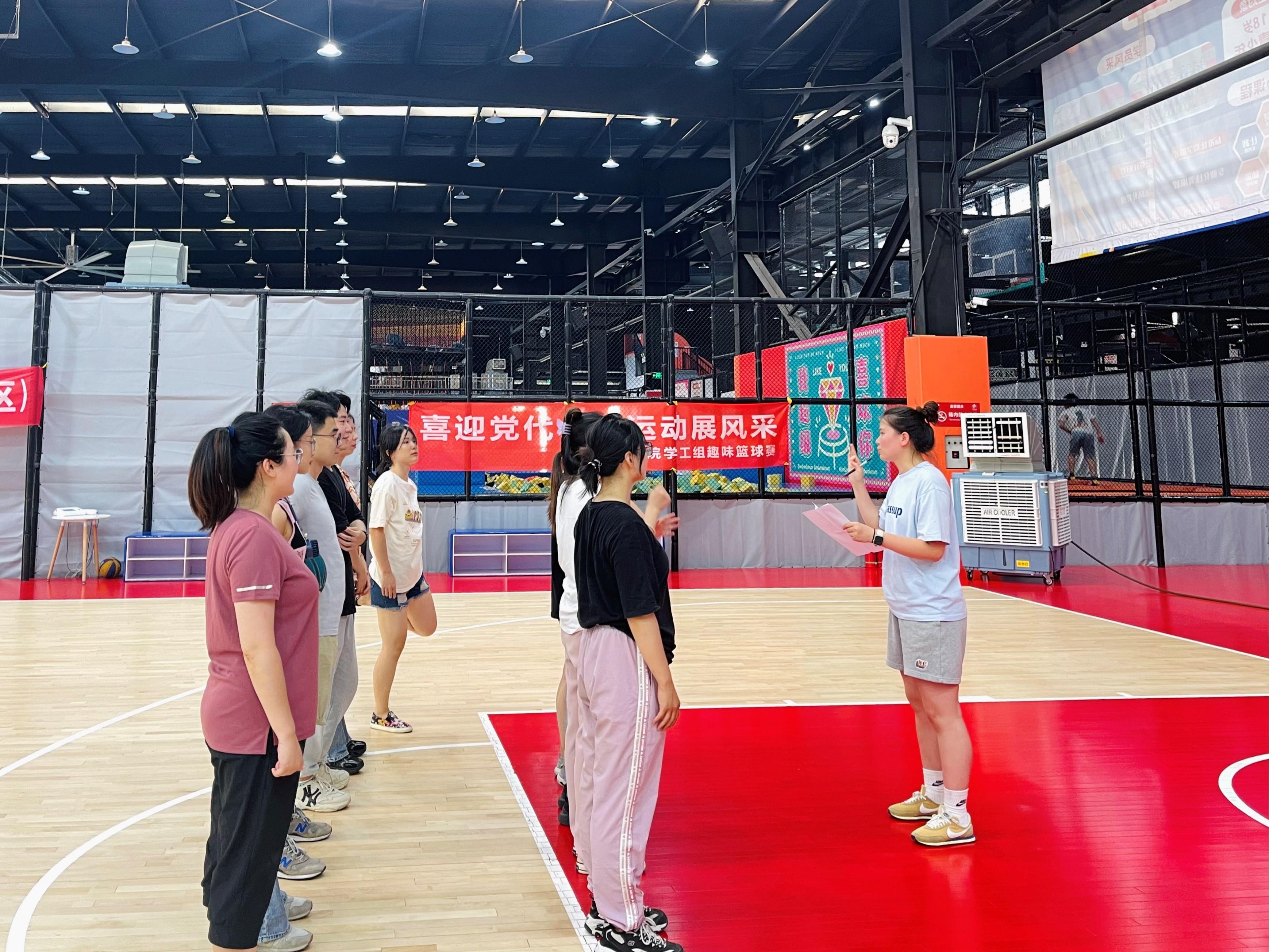 本次团队素质拓展活动以“趣味篮球赛”的形式开展,由辅导员曾文兰老师担任裁判,队员随机分成三组,进行团队比赛。