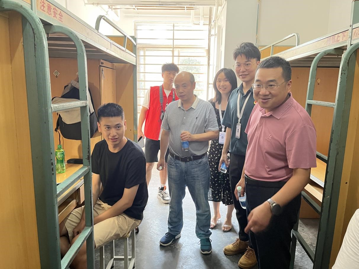 王勇、李涛副院长与新生进行了亲切交谈,详细了解新生宿舍安顿及适应情况,提醒要做好防暑、疫情防控,保护好生命财产安全,共同营造温馨、和谐、安全的宿舍生活环境。同时,还给新同学们给予了生活和学习上的建议,叮嘱同学们要团结有爱,互相帮助;以学习为第一要务,好好规划,好好努力奋进;任何困难烦恼都可以向辅导员和导师反映,平时要重视身体健康,积极运动,多参与学校学院活动,让自己的青春在学习奋进中盛放,不负青春韶华,不负理想岁月。