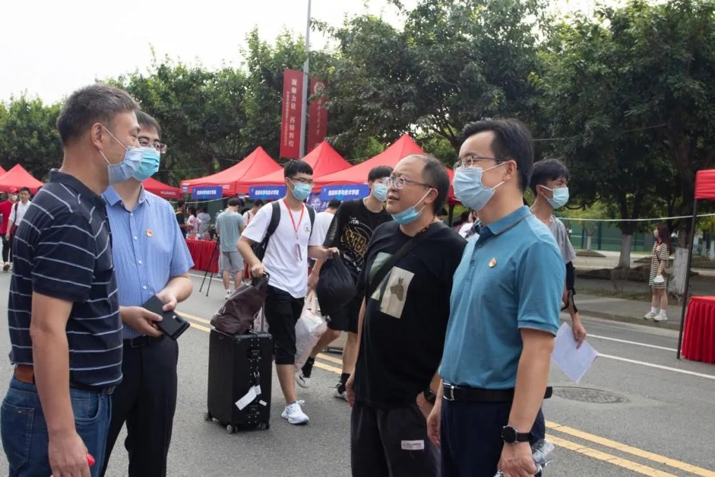学校、学院的领导老师们多次来到迎新现场慰问看望参与现场迎新服务的师生,对新生报到的情况予以关心,并对全体工作人员的付出给予高度肯定。