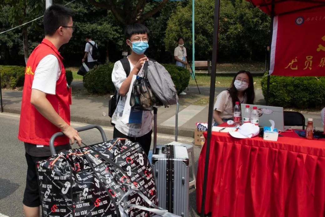 迎新现场到处都是忙碌的身影,一张张热情洋溢的笑脸,一句句暖心的慰问,一项项贴心的服务正在逐步消融新生们初入校园的陌生感。迎新现场的工作人员热情的同新生们交流,主动为新生拎行李,迎新现场热闹而井然有序。