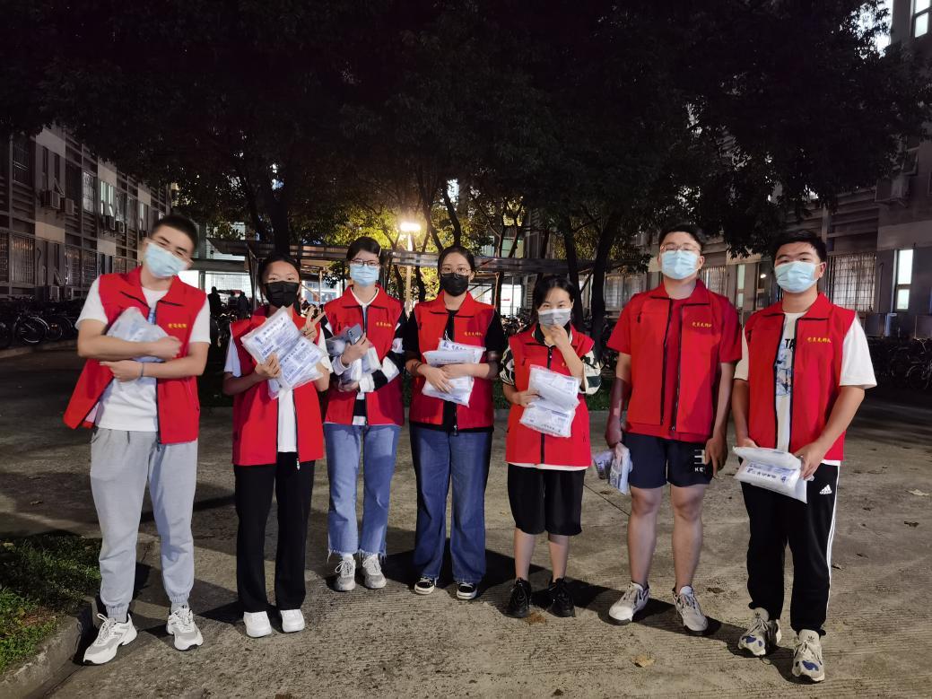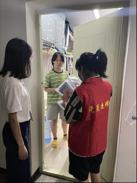 党员同志积极响应党组织的号召,在鲜红的党旗下迅速集结,为同学们送去防疫物资,用青春的迅猛速度、青春的火热温度、青春的担当态度,为同学们的防疫安全贡献力量。