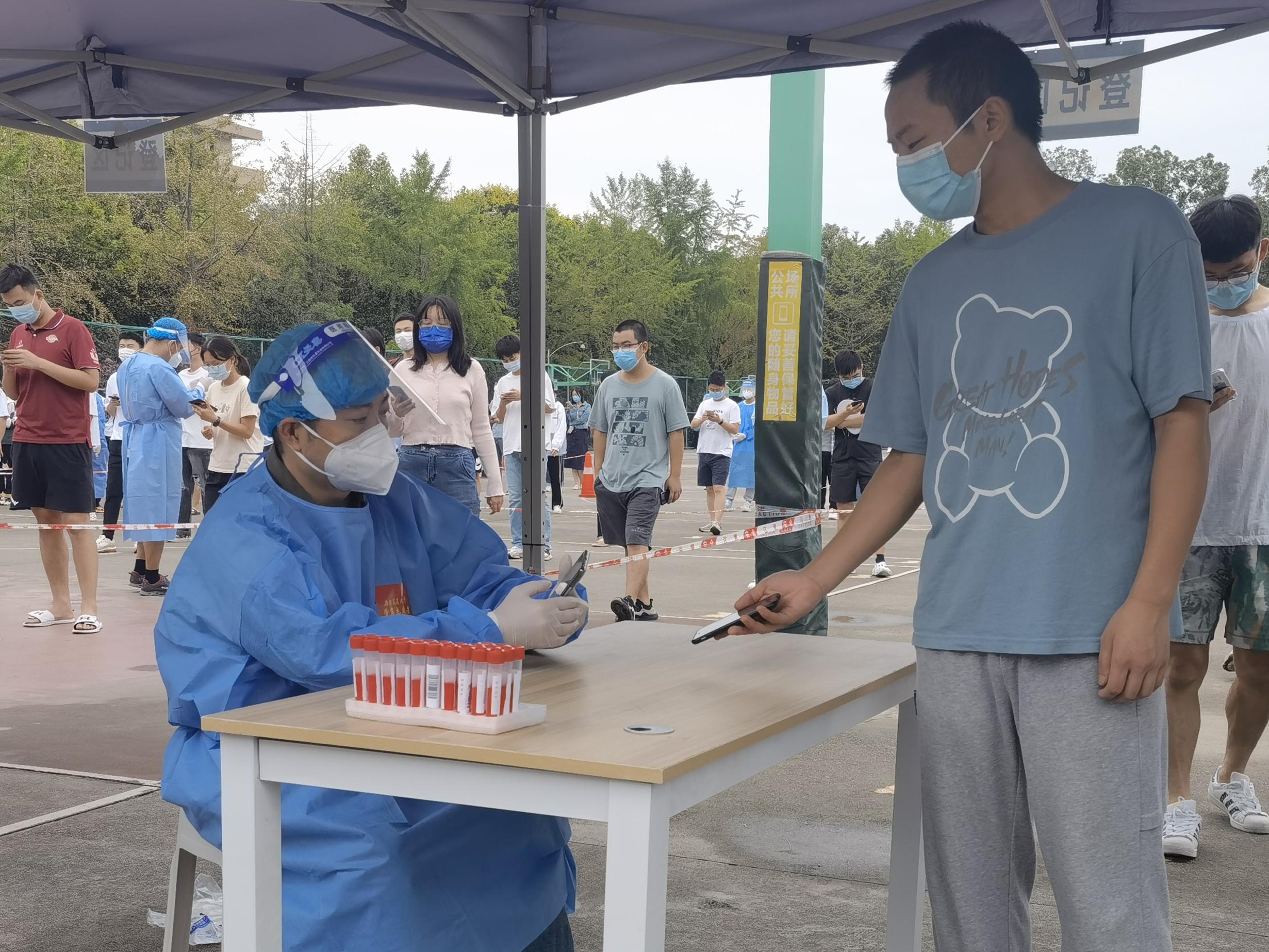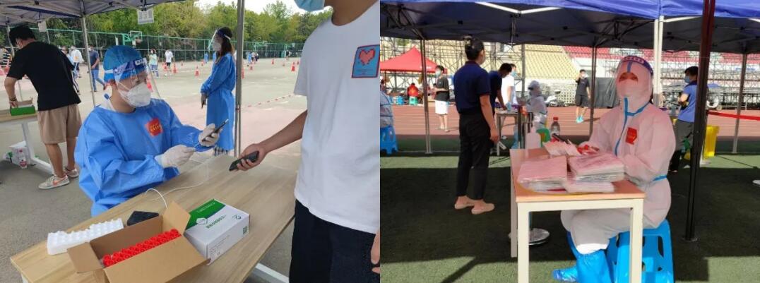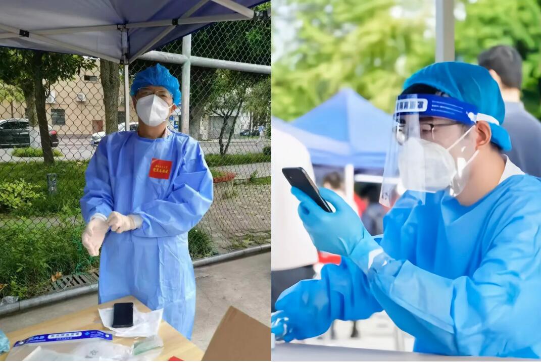 周友龙、李中在九里校区核酸检测现场参与志愿服务