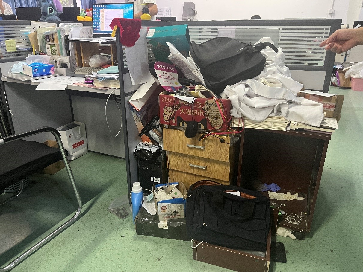 (三)3号楼2层部分工位区域堆积杂物。
