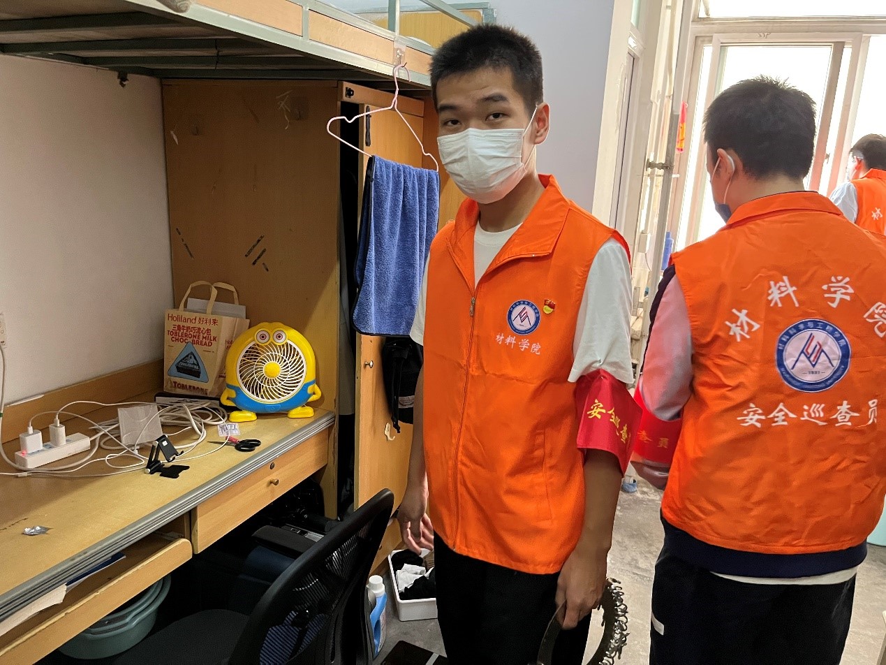 学生党员安全巡查队深入实验室。2022年9月28日,学生党员安全巡查队重点对九里校区3号楼实验室和学生工位区域的消防安全、化学安全、用电安全、环境卫生等多个方面进行了巡查,巡查结果登记于《学生党员安全巡查队巡查日志》。
