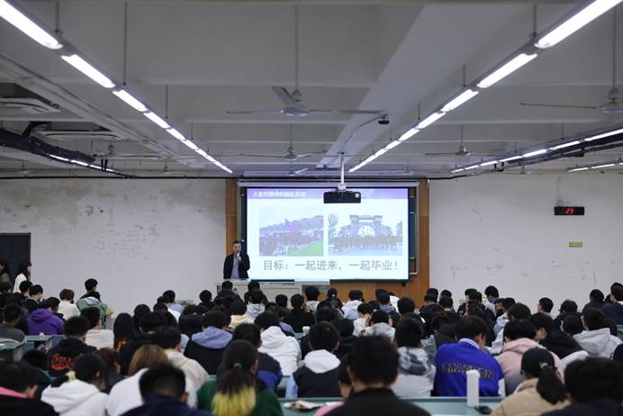 于犀浦校区X4350为2022级本科生举行安全教育专题讲座,学院党委副书记章春军担任主讲。章春军围绕本科生阶段可能面临的主要学业问题和日常安全问题两方面展开,教育内容涵盖学业安全、诚信考试、疫情防控、实验室安全、心理健康、网络借贷、意识形态安全、宿舍防火及用电安全等重要安全事项。