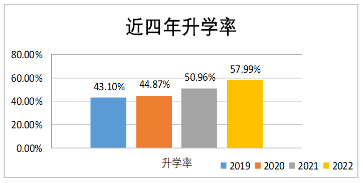 ■ 本科生升学率连续6年提升,2022届达57.99%,同比增长超7个百分点,名列学校前茅。