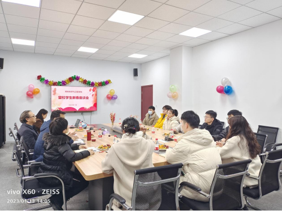 在交流中,同学们表示虽然没能返乡团聚,但是有学院的悉心关爱,让他们感受到家的温暖,今年将是一生中难忘的一个春节。同学们畅所欲言,讲述自己留校原因、科研进度、新年愿望、家乡春节习俗等。谈及在校生活时,同学们表示学校各方面生活保障非常充分,非常感谢学院。参加活动的领导和老师们一一为同学们送上真挚的节日祝福,针对同学们的关注与诉求进行了深入的交流。