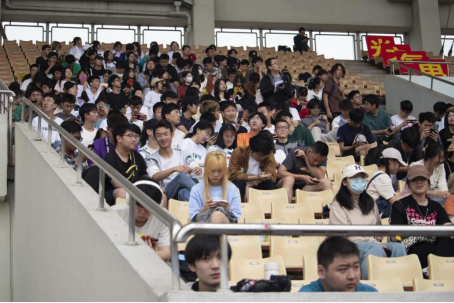 观众席上的同学们,或助威呐喊