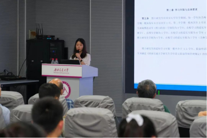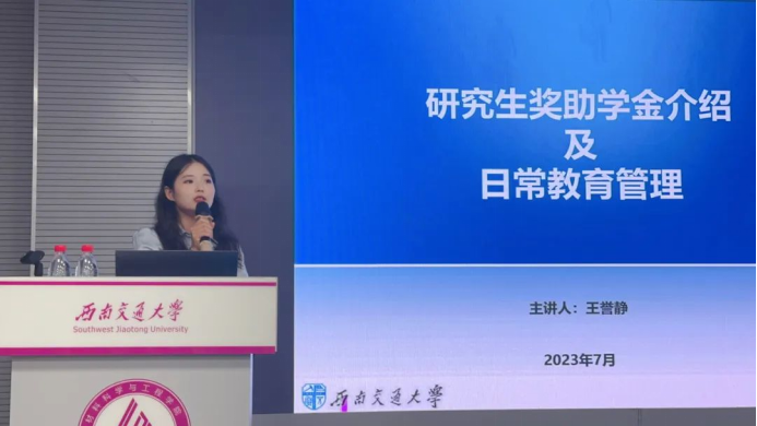 随后,刘艳副院长对学院院情进行介绍。她就“办学历史和硬件条件、师资队伍和骨干教师、科研团队和研究方向”等多方面的相关情况,为同学们进行了详细介绍,旨在增强同学们对西南交大包子漫画