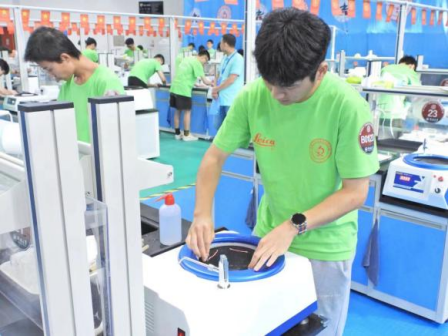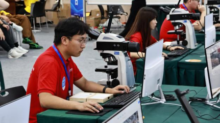 8月11日上午8:00至8月13日18:30大赛紧张有序地进行,参赛选手需要按照竞赛规则要求,在三天内分组完成两个抽取样品的制备,选手在30分钟内对样品的指定端面完成磨制、抛光、浸蚀、显微镜观察等流程,最终提交制备好的样品。评委老师按照选手操作规范、提交样品的宏观表面质量、提交样品的显微镜下质量等方面进行评分。我校三名参赛选手经过校赛、省赛的选拔以及赛前的集训,对比赛已经胸有成竹,在比赛中沉着冷静,发挥稳定,基本发挥出了训练水平。