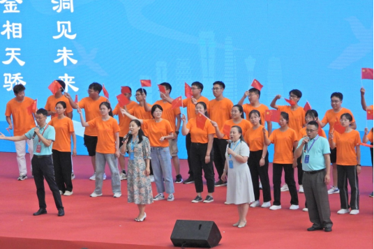 开幕式现场(我校王良辉老师担任快闪《同一首歌》领唱,