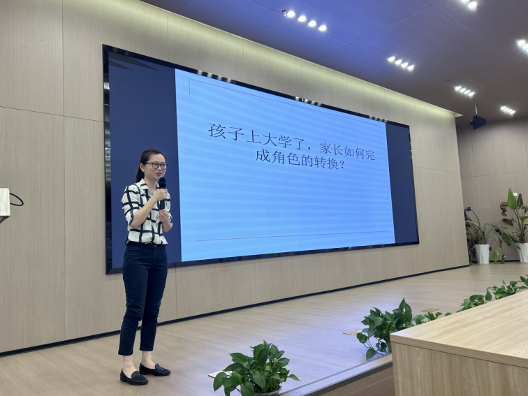 冯缙为家长们带来一场干货满满的心理健康专题讲座。她以“家长角色转换”为切入,提醒家长要主动适应孩子离家外出求学,逐步对孩子的成长“放手”。冯缙介绍了当前大学生常见的心理健康问题,详细讲解了心理问题的识别和应对办法。她强调,应对大学生心理健康问题,必须要有科学的态度和专业的指导。