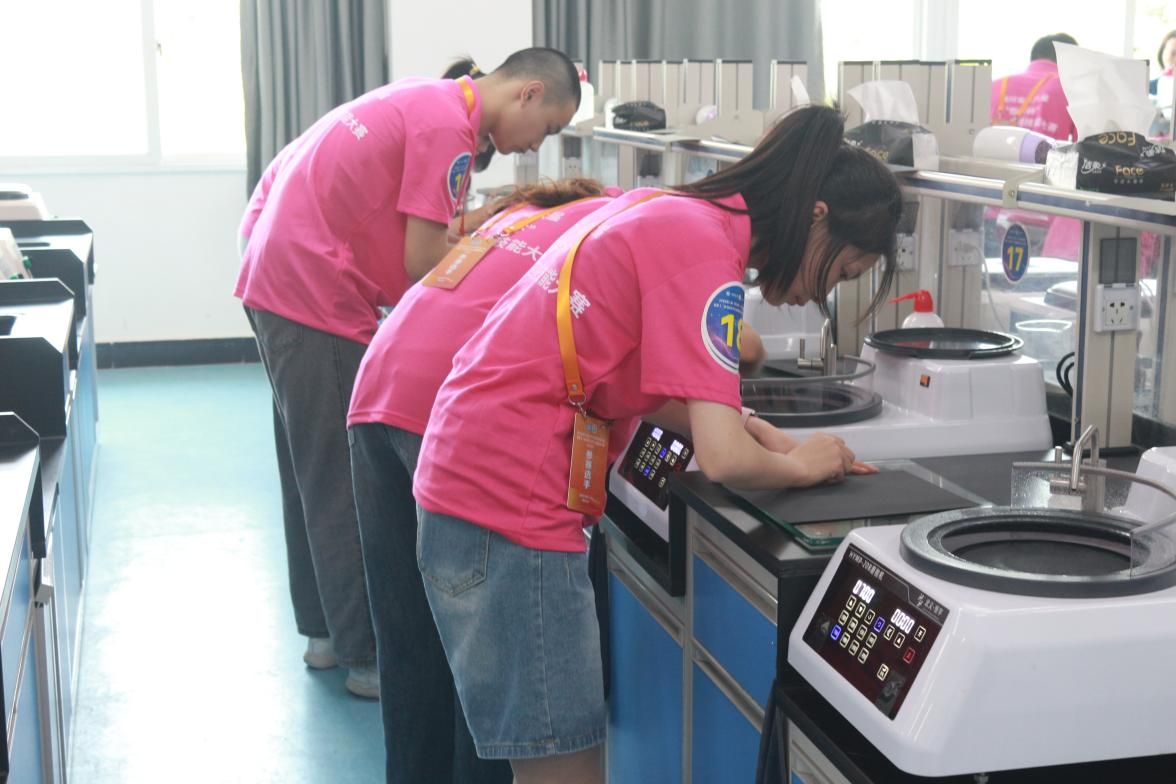 5月18日上午8时,赛事正式拉开帷幕。全体参赛选手共分成14个参赛组分别进行了工业纯铁及球墨铸铁两类样品的制备比赛。比赛要求参赛选手在30分钟内完成样品的磨制、抛光、腐蚀和显微镜观察等操作,并提交作品。