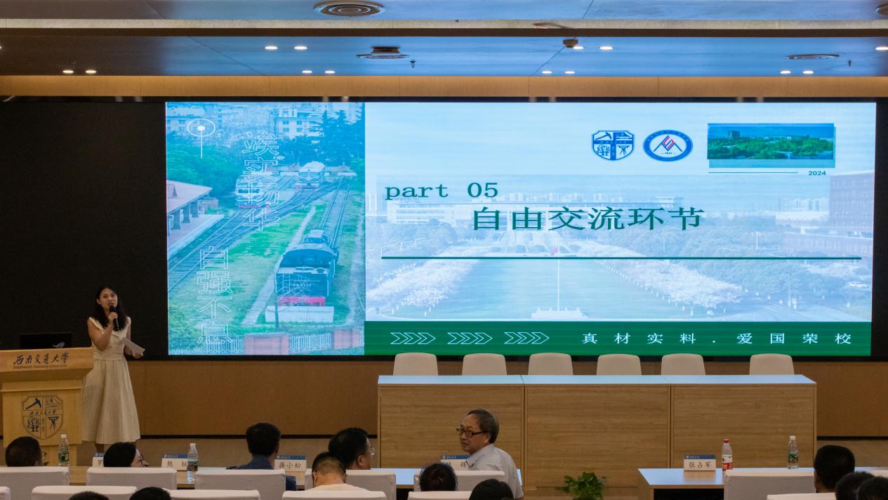 优秀学科成果及科技奖项,强调科教产深度融合促进成果转化,同时介绍了材料学科的支柱方向和新兴方向。他总结并分享到,家长要关注学生身心健康,孩子要在学校养成良好习惯,在西南交大得到满满的收获。