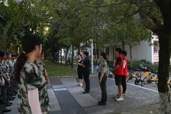 张书记和熊书记以及两位辅导员为教官和参训带来了慰问物资,表达了学院的关怀和支持,肯定了同学们的纪律意识和吃苦耐劳的精神。同时向同学们强调了军训的重要意义,军训不仅是大学生涯中一次重要的国防教育活动,更是磨砺意志、锤炼品格、增强集体荣誉感和责任感的重要契机。希望同学们能够珍惜这次难得的机会,将军训中培养的优秀品质带到日后的学习和生活中去。张书记、熊书记和同学们深入交流,询问新生们的军训感受,聊的十分愉快。