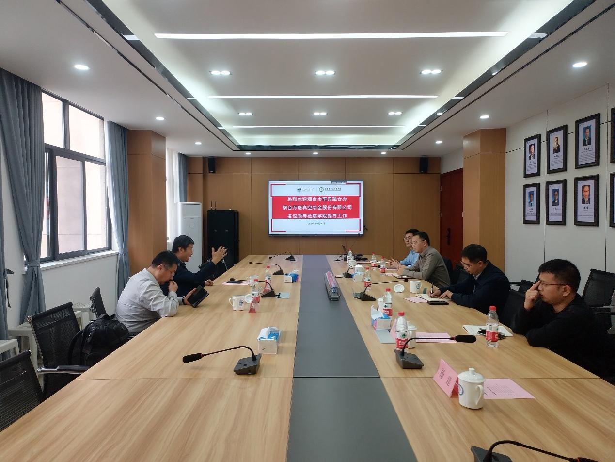 学院党委书记张占军致欢迎辞,对烟台市委军民融合办主任白志诚一行的到来表示热烈欢迎。蒋小松简要介绍学院的基本情况和近年来在教学、科研和学科建设方面取得的成绩。烟台市委军民融合办主任白志诚围绕军民融合发展形势及其相关举措进行详细说明。