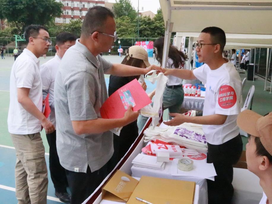 签到处。志愿者为每位校友送上精心设计的“时光礼包”——内含纪念T恤、校徽钥匙扣、学院发展图册及定制餐券。礼包中一枚刻有2001-2025字样的金属徽章,成为校友们争相佩戴的“重逢信物”。