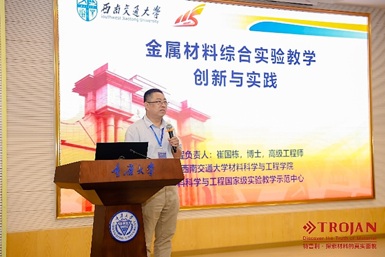 崔国栋老师受邀作题为《金属材料综合教学创新与实践》的报告。在报告中详细介绍了我校在金属材料综合实验教学方面取得的卓有成效的工作,并进行了经验分享,获得了与会人员的关注与认可。