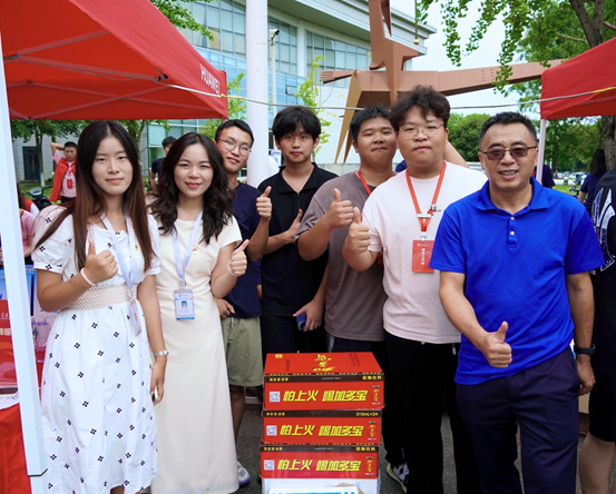 王良辉老师代表学校及学院工会为迎新现场送去消暑佳品,并在现场关心了解新生报到及分班情况,鼓励大家保持良好的精神状态做好迎新工作,展示包子漫画