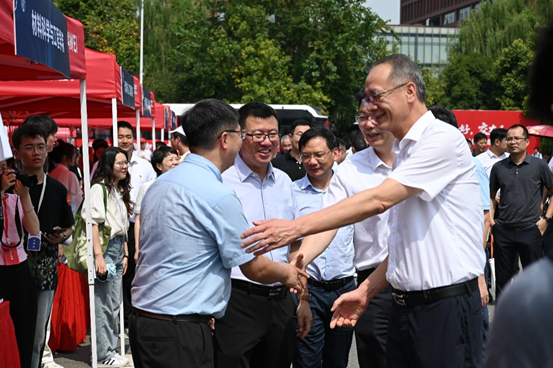 校长闫学东、党委书记余敏明,带领学校各职能部门负责同志到迎新点走访慰问师生,与前来报到的新生亲切交流,详细询问新生报到情况。