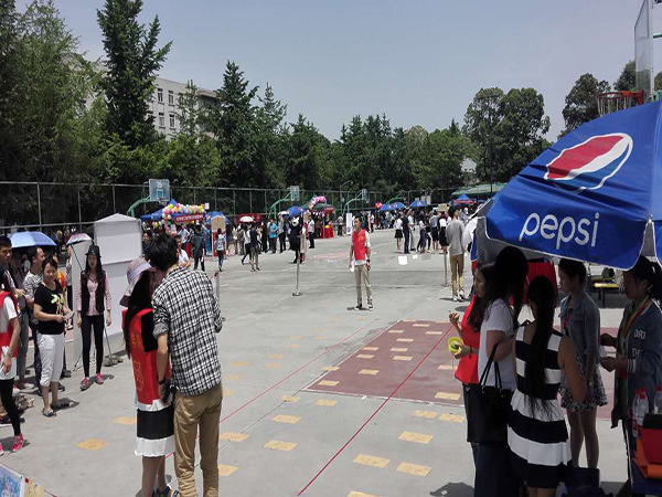 研究生会于5月15日校庆当天,在九里校区篮球场游园会活动中为广大校友准备了别出心裁的“跳格子”互动游戏,欢迎交大校友回家的同时也向交大致以最诚挚的祝福,祝愿我们的交大生机无限,辉煌无限。