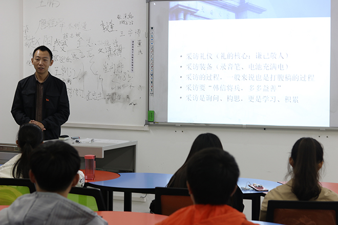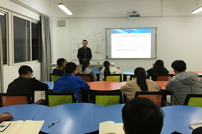 各个学生组织的宣传骨干。培训会由黄德明老师主持,阮琦老师主讲。此次培训围绕着新闻记者需要注意的六个关键词(选择、采访、写作、标题、照片、积累)展开,并指出新闻采写、摄影过程中出现的常见问题。