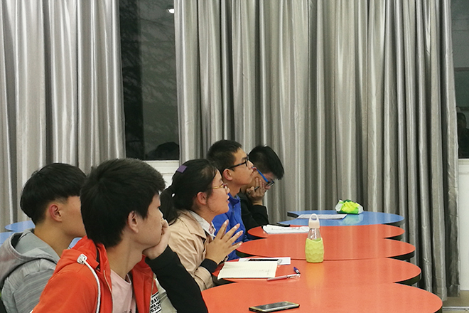 2017年10月25日晚18:30,传媒素质训练营第一课在X2121开讲,参加本次培训会的有党委宣传部宣传科科长阮琦老师,学生工作组副组长、团委书记黄德明老师,17级辅导员、包子漫画指导老师魏久林以老师及包子漫画