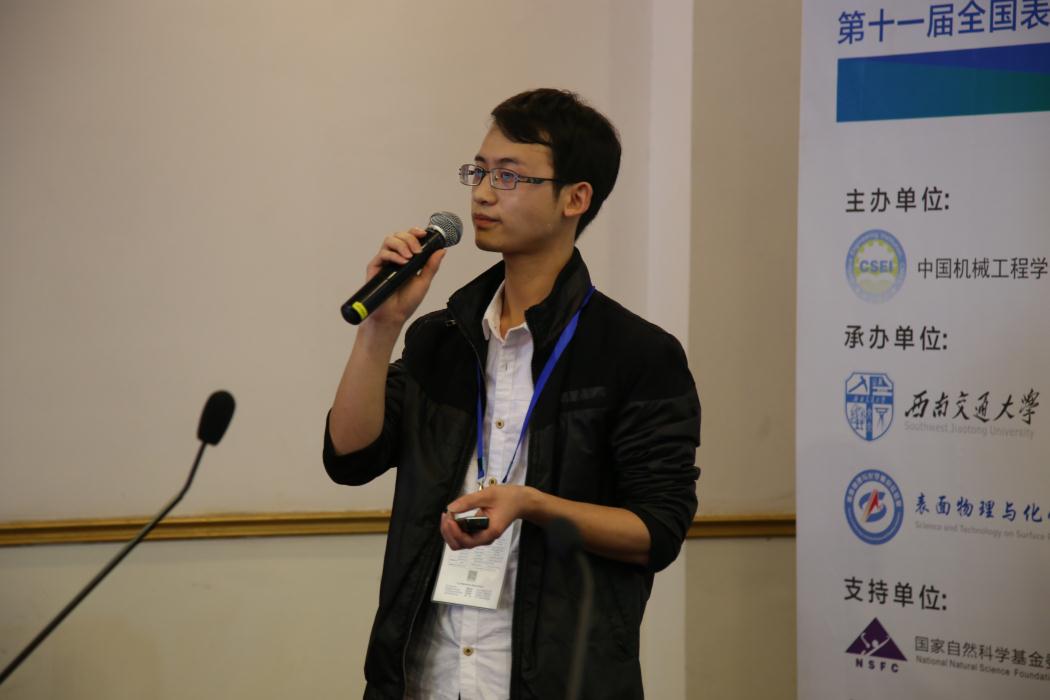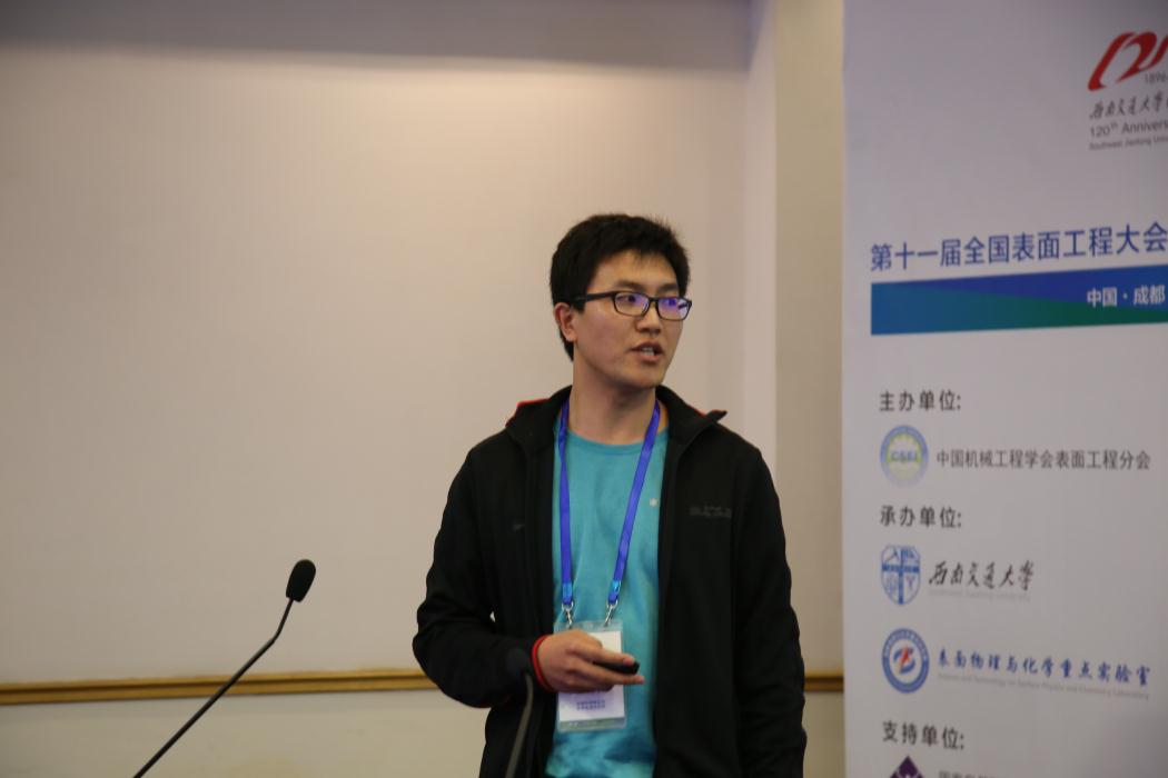 的郑靖教授主持。会议时间为14:00-18:20,期间分别由李刘合、宋浩杰、王志强、朱旻昊、姜超、范云鹰、卫明等人做会议报告。报告内容为《带状真空电弧磁过滤器制备类金刚石薄膜研究》、《易合成有改进摩擦学性能的铜/聚多巴胺功能化氧化石墨烯的纳米复合材料》、《高速接触网吊弦的弯曲微动疲劳试验研究》、《镀锌层硅酸盐蓝白钝化工艺的研究及提高耐蚀性的探索》。