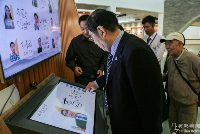 在报告会取得圆满成功后,朱朱旻昊院长、陈兴莲书记、章春军组长陪同葛昌纯院士一行参观了学校校史馆,档案馆馆长高平平全程陪同参观。葛院士在参观过程中非常高兴,在多个场景驻足向大家回忆当年的时光,兴致勃勃地向大家讲述自己和校友的故事,并在签名台留下了自己照片和亲笔签字。
