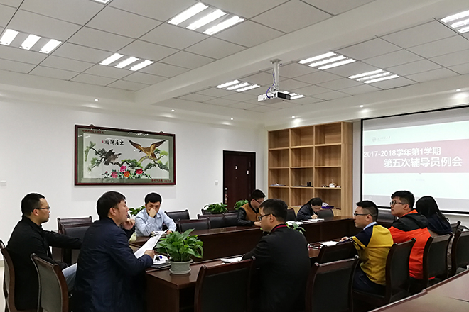 党委副书记(主持工作)贺剑老师,党委副书记、纪委委员、学生工作组组长章春军老师,学生工作组副组长、团委书记黄德明老师及全体辅导员老师。会议由章春军副书记主持,他首先向大家介绍了2位新成员。