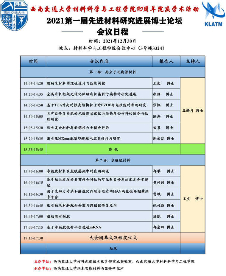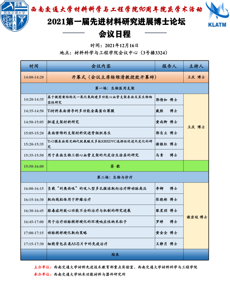 90年院庆学术活动——2021第一届先进材料研究进展博士论坛。本次论坛分为生物医用支架,生物与诊疗,医用多功能材料,金属功能材料,高分子及能源材料,水凝胶材料六个分会场,涵盖了先进材料研究前沿的36个方向,并由2021级博士进行主题报告。希望借举行此次博士论坛的契机,为包子漫画