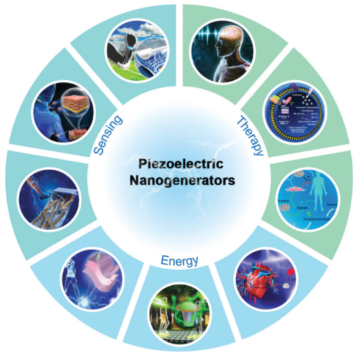 柔性压电纳米发电机(PENG),利用压电效应,可实现高效的机电能量转换,在主动式传感和能量收集等领域吸引了大量关注,并展现了广阔的应用前景。论文对用于个性化医疗的压电纳米发电机进行了全面的综述。首先,作者简要介绍了压电效应的基础物理科学;其次分别从材料工程策略和器件结构设计两个维度对提升压电纳米发电机综合性能进行了系统讨论;在此基础上,全面综述了压电纳米发电机以人体为中心的能量收集、主动传感和电刺激治疗等领域的应用;最后,作者提出了一套基于压电纳米发电机的智能闭环系统,以构建下一代个性化医疗的(IoMT)范式,并详细介绍了压电纳米发电机用于自供电生物电子和个性化医疗所面临的挑战和机遇。
