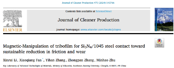 磨蚀防护技术与理论课题组探索了磁场对摩擦膜(tribofilm)组织结构的影响,特别是通过磁场控制磨损颗粒氧化的潜力。研究中开发了一种具有纹理化表面的摩擦系统,该表面特征反映了磨损后的表面状态。结合有限元分析,深入解析了磁场在磨损表面上的分布情况,并揭示了磁场如何影响氧化层的积累与摩擦学行为之间的关系。实验结果表明,磁场不仅能促进磨损颗粒的氧化,还能通过重新排列氧化颗粒来提高摩擦膜的密度和厚度,从而减少摩擦和磨损。该研究为理解磁场下摩擦学行为的基本机制提供了新见解,并为实现高效传动润滑控制提出了新的应用前景。该工作以“Magnetic-Manipulation of tribofilm for Si3N4/1045 steel contact toward sustainable reduction in friction and wear”为题发表在《Journal of Cleaner Production》上。该研究得到国家自然科学基金委的支持。