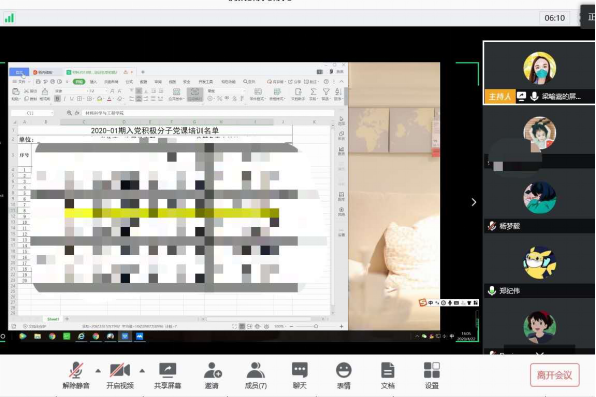 本科生第四(2018级、2019级)党支部通过腾讯会议平台召开党员大会,讨论确定了2020-01期入党积极分子党课培训名单,通报了学院近期重大事项,探讨了党支部下一阶段的重点工作。本次会议由党支部书记梁喻嘉同志主持,支部党员、预备党员7人全部参加。