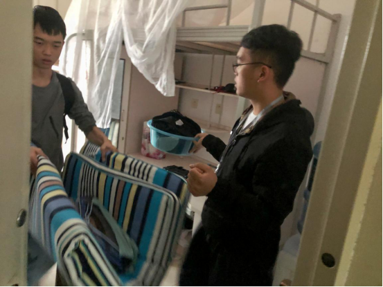 其中,据走访刘杰龙、王国强等同学上午在18栋一楼的不分寝室帮助搬运女生的大件行李,不辞辛劳,并在宿舍倒迁结束后,负责整理和回收后勤物品。