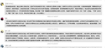 接下来,严涵同学也发表了自己的一些心得。他说道:教育是国之大计,党之大计,教育评价是树立正确办学导向的指挥棒,也是提高现代教育治理能力的关键点。我们应该扭转不科学的教育评价导向,坚决克服“五唯”,增强深化新时代教育评价改革的责任感、使命感和紧迫感。对于重点的领域、关键的环节和主攻的方向,我们应该明确和强调。我们应该把握促进德智体美劳全面发展的要义,着力改革学生评价,为学生树立科学成才观念,完善德育评价,强化体育评价,改进美育评价,加强劳动教育评价,严格学业标准,深化考试招生制度改革。培养一流人才, 产出一流成果,主动服务国家“交通强国”“教育强国”“一带一路”倡议等需求。《总体方案》的出台,顺应时代发展潮流,功在当代,利在千秋。