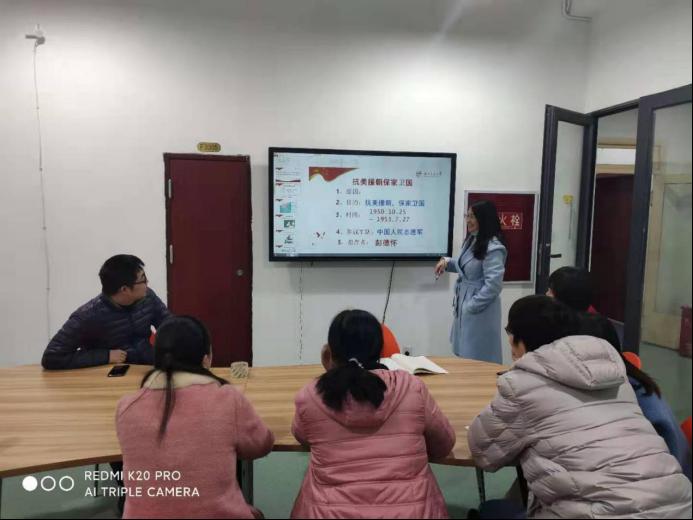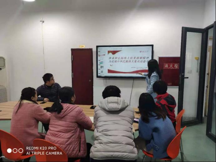 材料科学与工程学院研究生第九党支部在支部书记严翼飞老师的带领下开展了“继承和弘扬伟大抗美援朝精神,为实现中华民族伟大复兴而奋斗”主题组织生活。本次主题活动旨在弘扬爱国主义为核心的伟大民族精神,激发党员的爱国热情,丰富党员的组织活动。