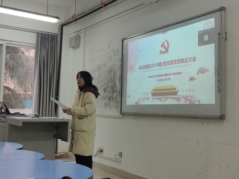 本科生第四(2018级)党支部于X2121召开了全体党员大会,旨在讨论赵涛林、于睿智等共21名发展对象发展为新党员的问题,本次会议由支部书记梁喻嘉同志主持。
