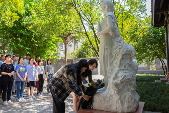 首先,本科第一党支部书记熊苏雅、本科第二党支部书记代宇欣代表全体成员向革命烈士敬献献花,全体成员鞠躬致敬。