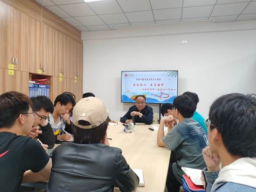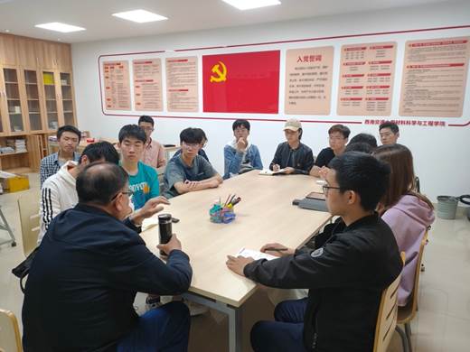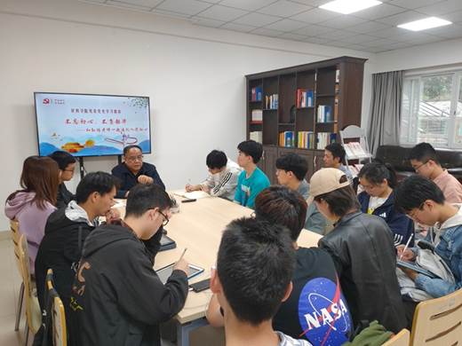 退休教职工孙鸿老师和青年党员、入党积极分子交流,辅导员老师郑纪伟、熊苏雅及本科生各党支部学生代表等15人参加座谈会。
