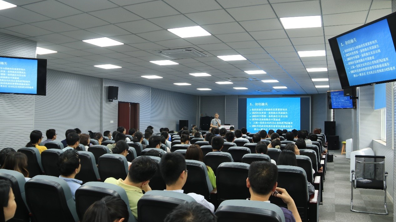 梁锦唐老师以“世纪回眸”为题,通过“初创榆关”、“复校唐山”、“搬迁峨眉”、“定址蓉城”和“扩建犀浦”五个关键时间点,解说交大125年的辉煌校史;通过杰出校友、中国共产党早期党员武怀让、冯亮功的事迹以及抗美援朝中的交大人,讲述学校党组织的建立和发展;通过学院1931年创立的决定,杰出校友、“两弹一星”功勋奖章获得者姚桐斌的介绍,呈现学院的发展历史。