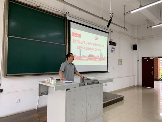 活动第一项,由冷永祥副院长为与会师生讲党课——学习习近平总书记在中国科学院第二十次院士大会、中国工程院第十五次院士大会、中国科协第十次全国代表大会上的讲话精神。冷永祥副院长紧紧围绕讲话内容,带领师生回顾了在党的坚强领导下国家科技事业取得的巨大成就,了解当前背景下新一轮科技革命和产业变革的演化趋势以及加快建设科技强国的重点任务。冷永祥副院长结合材料学科特点、生物医学工程专业发展趋势及其在国家科技事业的重要地位,勉励老师和同学们努力拼搏进取,掌握扎实本领,肩负光荣使命,勇攀学术高峰,为建设科技强国贡献交大力量。