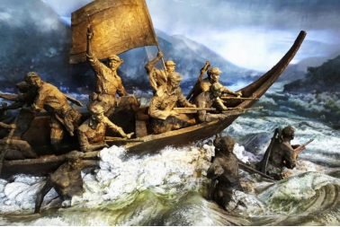 1935年5月25日,中央红军先遣队在夺取安顺场渡口后,挑选17位勇士组成突击队,凭借一条民船分两批强度大渡河。在战友的掩护下,17名勇士顶着敌人的枪林弹雨,迎着激流险滩,冲到对岸后同二百多人的敌军展开殊死搏斗,突破大渡河天险,为红军主力北上杀开一条通路。