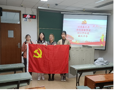 首先由郑学超同学介绍了此次活动的背景。今年是中国共产党成立100周年,百年恰是风华正茂,迈向新征程的中国共产党,举世瞩目。100年来,中国社会沧桑巨变,实现了从站起来、富起来到强起来的伟大飞跃。借此契机,开展“我与党旗合个影”活动,献礼建党百年,向伟大的党进行告白。第二项是由党员同志分享自己的入党心得体会和对党的认识等。第三项是班级同学分组、有序进行合影留念。