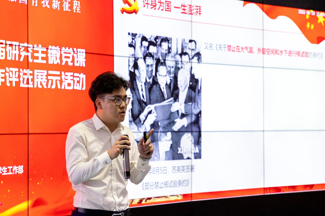 四次答辩,四次修改,终于汇成《信仰——不辞沉默铸坚甲,甘献年华逐紫烟》微党课。其以“两弹一星”功勋获得者陈能宽院士的故事为媒介,生动再现了陈能宽院士参与原子弹研究所历经的重重磨难,向观众展现了信仰的磅礴伟力。其紧紧围绕信仰展开,以陈能宽院士心怀信仰,激励广大青年坚定关乎祖国与人民的信仰,以他的家国情怀、远大志向、坚毅勇气、淡泊名利和锲而不言为国铸器的高尚品格,为我们坚定前行的步伐。“信仰是为了一个不知道何时可以实现的目标全力以赴,甚至是牺牲自己的一切,不管成不成功,都将坚定地为之奋斗终身”,微党课以此鼓励广大青年正确树立和理解“四个自信”,铸就属于自己的信仰,为实现中华民族伟大复兴贡献自己的青春力量!