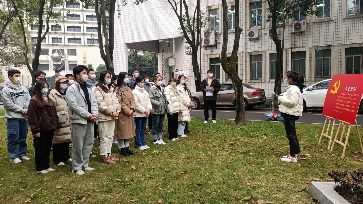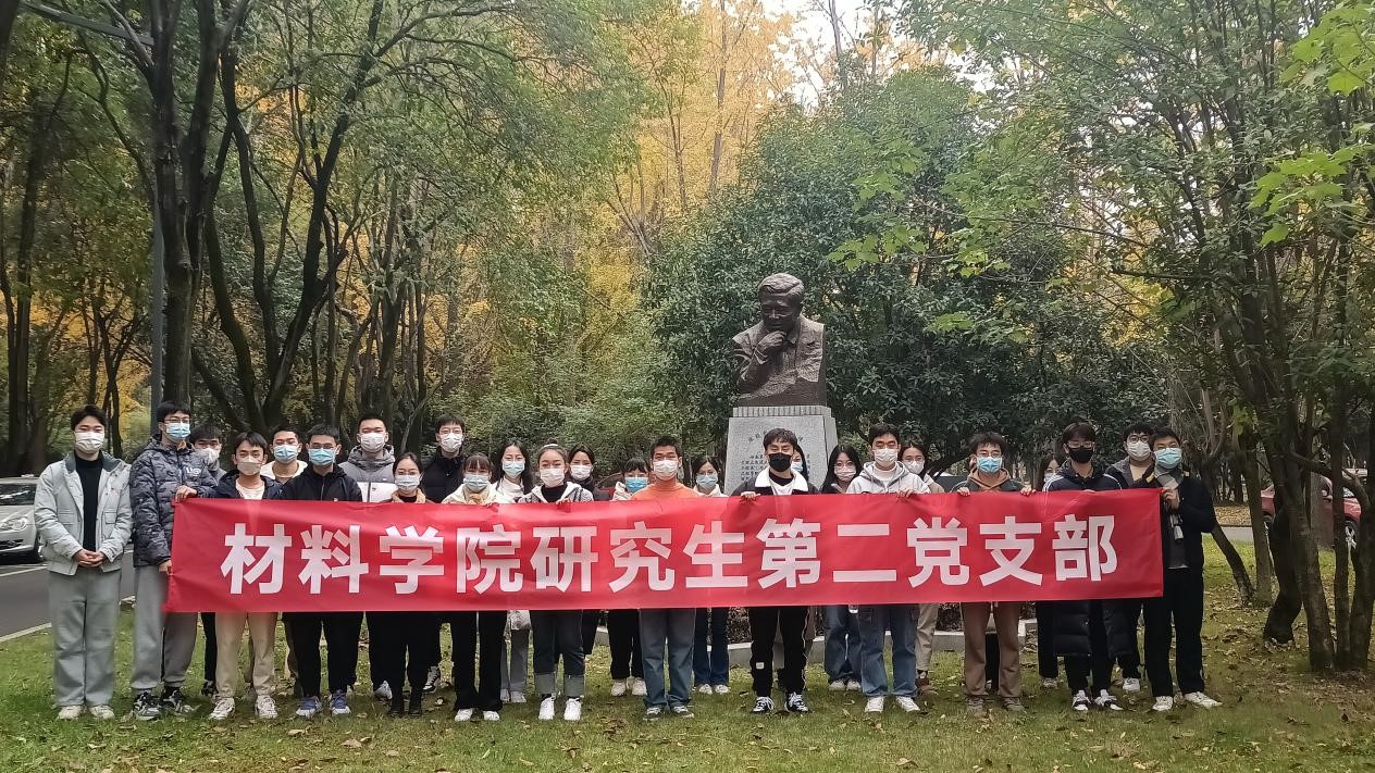 研究生第二党支部全体党员和积极分子于3号教学楼下陈能宽院士雕像处开展学习党的二十大与科学家(陈能宽)精神、弘扬革命志士优秀文化的专题活动。