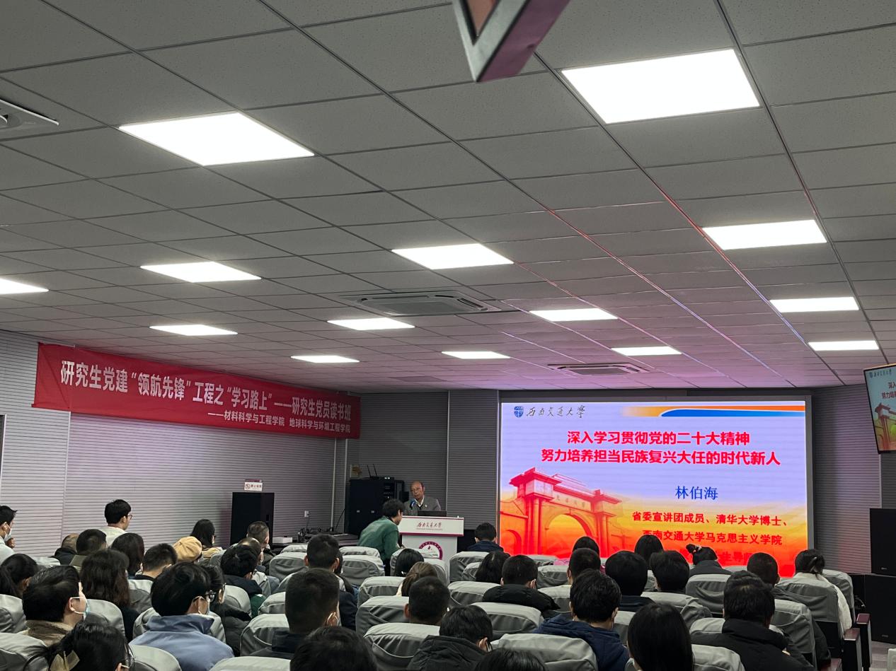 2022年12月2日下午,四川省宣讲团成员、著名专家、学校马克思主义学院原院长林伯海教授应邀在九里校区J3324会议室为学生党员作《深入学习贯彻党的二十大精神 努力培养担当民族复兴大任的时代新人》专题报告。本次专题报告由材料学院党委书记陈勇主持。