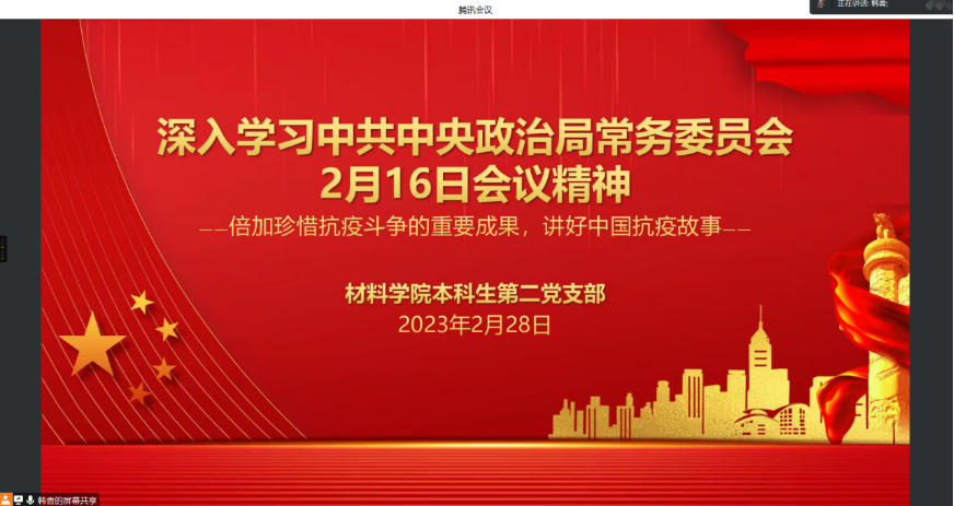 2023年2月28日晚,包子漫画 本科生第二党支部通过线上组织开展了“中共中央政治局常务委员会2月16日会议精神”专题学习。会上,全体同志共同观看了此次会议精神的专题报道。