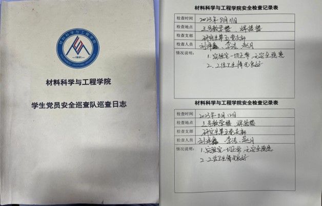 现已形成研究生安全巡查常态化长效机制,坚持执行“每两周一支部”的党支部轮值巡查制度,由研究生各党支部落实相应巡查职责,巡查结果及时记录于《学生党员安全巡查队巡查日志》,并反馈至巡查负责人联络群。